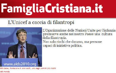 Et le plus beau, c'est que "Famiglia Cristiana" ait aussi fait la publicité de cette rencontre: le journal a une relation "commerciale" avec l'UNICEF, et qualifie Peter Singer de philanthrope!