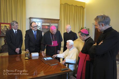 La tablette reçue par le pape, comprend une courte vidéo réalisée par cette agence. Elle met aussi en lumière l'histoire de sa vocation sacerdotale; il y a aussi une intéressante interview de son frère Georg Ratzinger, lui aussi prêtre.