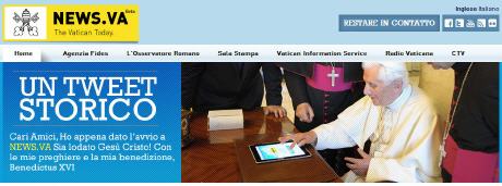 "News.va" fera ses débuts en la fête des saints Pierre et Paul, pour marquer le 60e anniversaire de l'ordination sacerdotale de Benoît XVI. Et demain (ndt: donc 28 juin), ce sera justement le Pape, pour les Vêpres, qui donnera le premier "clic" sur une tablette: la vidéo du geste historique sera ensuite sur le nouveau portail multimédia en ligne du Vatican.
