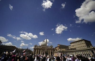 Il y a six ans désormais, nous nous trouvions sur cette place pour célébrer les funérailles de Jean-Paul II. La douleur causée par sa mort était profonde, mais supérieur était le sentiment qu'une immense grâce enveloppait Rome et le monde entier. Cette grâce qui était en quelque sorte le fruit de toute la vie de mon bien-aimé prédécesseur et, en particulier, de son témoignage dans la souffrance. Ce jour-là, nous sentions déjà flotter le parfum de sa sainteté, et le Peuple de Dieu a manifesté de nombreuses manières sa vénération envers lui.