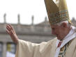 "Chers frères et sœurs, aujourd'hui, resplendit à nos yeux, dans la pleine lumière spirituelle du Christ ressuscité, la figure aimée et vénérée de Jean-Paul II. Aujourd'hui, son nom s'ajoute à la foule des saints et bienheureux qu'il a proclamés durant les presque 27 ans de son pontificat, rappelant avec force la vocation universelle à la dimension élevée de la vie chrétienne, à la sainteté, comme l'affirme la Constitution conciliaire Lumen Gentium sur l'Eglise. Tous les membres du Peuple de Dieu, évêques, prêtres, diacres, fidèles laïcs, religieux, religieuses, nous sommes en marche vers la patrie céleste, où nous a précédé la Vierge Marie, associée de manière particulière et parfaite au mystère du Christ et de l'Eglise.