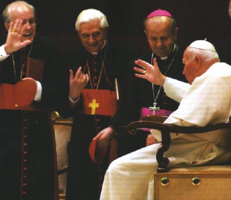 Ce site étant consacré à Benoît XVI, il me plaît de souligner un chapitre intitulé "L'ami allemand" signé Philippe Maxence. Avec finesse, sont évoquées les relations entre les deux hommes, leurs différences, leur complémentarité, et soulignés la contribution essentielle de Joseph Ratzinger aux grands textes du précédent pontificat, mais aussi l'originalité de Jean-Paul II, et ce qui lui revient.