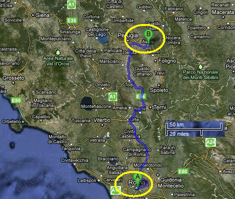 L'arrivée à Assise est prévue après une heure cinquante de voyage. Le long du parcours, le convoi ralentira à proximité des gares de Terni, Spolète et Foligno. Le retour est prévu dans la soirée.