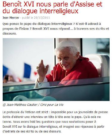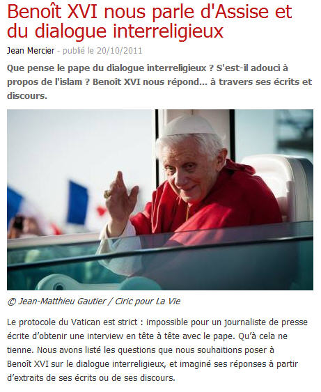 L'exercice littéraire à risque de Jean Mercier, dans " la Vie", dans la perspective de la rencontre d'Assise (23/10/2011)