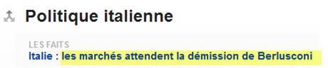 Désormais, on peut dire que c'est une question de jours, voire d'heures. L'actuel gouvernement Berlusconi, après une lente et douloureuse agonie, est en train de s'éteindre. Malgré la tenace volonté de résistance du Président du Conseil, ce qui était déjà clair depuis plusieurs semaines est en train de se réaliser. A Berlusconi revient le démérite de ne pas avoir pourvu à temps à trouver une issue politique, au moins en essayant de sauver la majorité. Il a préféré, au contraire, un bras de fer qui - paralysant l'action du gouvernement - a contribué à alimenter les attaques financières sur notre pays, qui nous ont amené ces jours-ci à une sorte de mise sous tutelle par l'UE et le Fonds monétaire international.