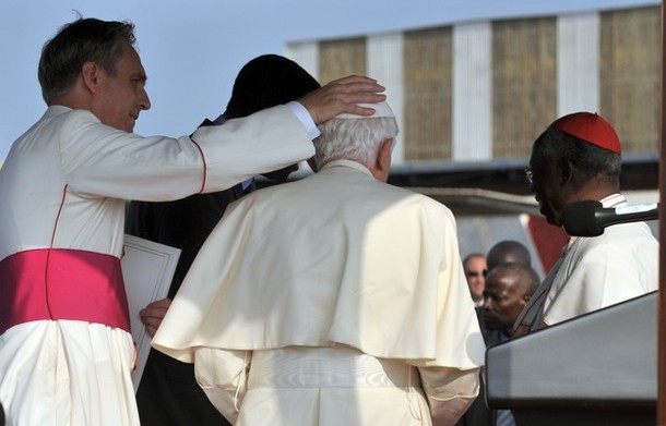 A midi Benoît XVI gagne la basilique de l'Immaculée Conception de Ouidah pour signer l'exhortation apostolique Africae Munus. C'est un document important qui a demandé de nombreuses heures de travail, de réflexion, des années de collationnement pour toutes les informations reçues et qui pourtant comporte une lacune sévère pour certains : l'absence du préservatif.