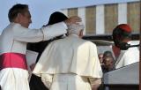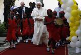 Une chaîne de jeunes africains accompagne le Pape qui s'éloigne.