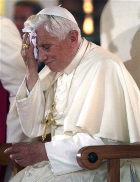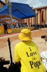 Bien sûr Benoît XVI s’adresse avec affection aux personnes malades, à celles qui souffrent, qui sont touchées par le sida ou par d'autres maladies. Gardez courage ! Pour la procession des offrandes on retrouve le sourire de notre Pape, il écoute avec patience, bénit ceux qui ont la grâce de l'approcher ; un détail a attiré mon attention : il n'a pas la mitre. Dans la foule deux jeunes dansent avec une photo de Benoît XVI coincée dans leur turban. Après la célébration il remet le livret de l'exhortation apostolique à chaque représentant des Conférences Episcopales . Pour conclure il récite l'Angélus et regagne la papamobile avec mitre et bâton.