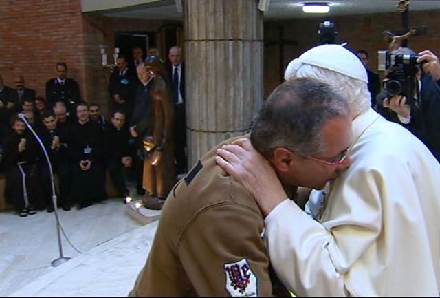 La rencontre s’est passée ce dimanche matin 18 décembre 2011, en l’église de la prison, où les prisonniers ont réservé à Benoît XVI un accueil enthousiaste, appuyé par des avalanches de standing ovations.