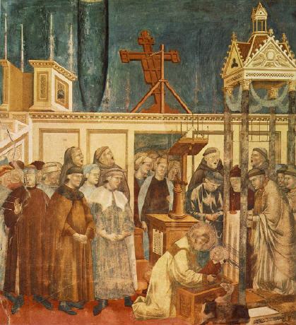 Entre 1228 et le début de 1229, le bienheureux Frère Thomas de Celano (environ 1200-1265) écrit la première biographie de saint François d'Assise (1182-1226), appelé Vita Prima.