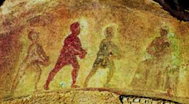 La plus ancienne représentation en rapport avec les Evangiles de l’Enfance du Christ, actuellement connue, est une peinture des catacombes de Priscille, à Rome et représente l’adoration des Mages : ceux-ci, au nombre de trois et dans les mains desquels on distingue des présents, arrivent devant une Vierge assise dans une attitude assez majestueuse portant l’Enfant Jésus sur son bras gauche. Cette peinture pourrait avoir été exécutée vers l’an 180"
