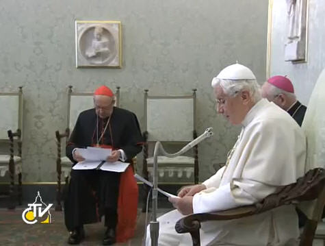 [Il suffit de consulter cette page (novembre) et celle-là (décembre) pour constater à quel point, en cette fin d'année, l'agenda est chargé, les rencontres se multiplient, et avec elles, les discours. Qui osera encore dire que les engagements du Saint-Père ont été "allégés" pour le ménager ?]