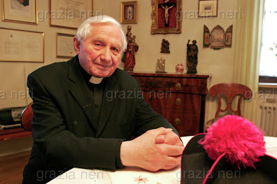 Voici une (énième) interviewe du frère du Pape, celle-là réalisée par l'agence catholique allemande kath.net/KNA, sans doute à l'occasion du 85e anniversaire du Saint-Père. C'est mon amie Teresa qui attire mon attention dessus.