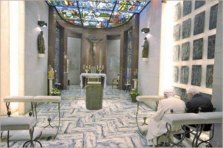 Les images que nous publions retracent un moment de la prière des Laudes que les deux frères ont récitée ensemble ce matin dans la chapelle privée du Saint-Père.