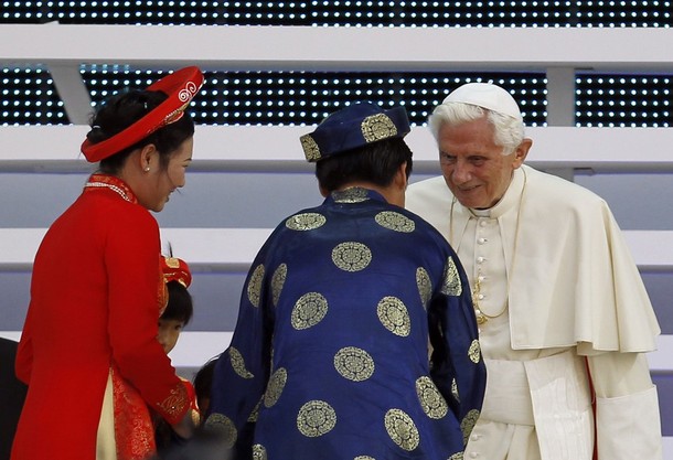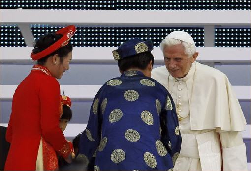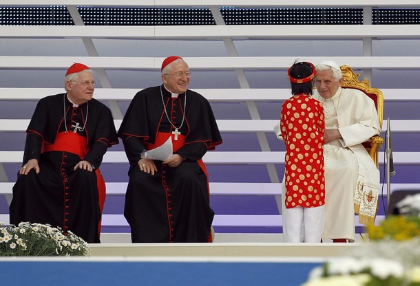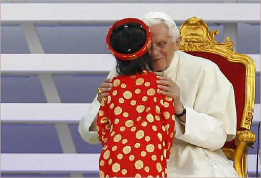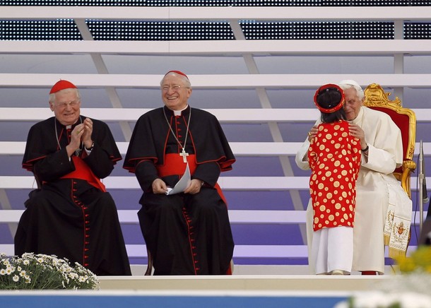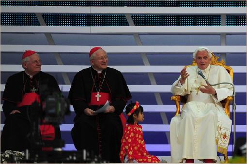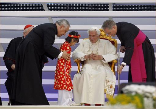 Quelques belles images d'une rencontre unique: la fillette de 7 ans et le pape de 85 ans! (3/6/2012)