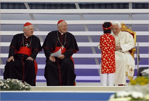 Le cardinal Bertone est hors champ, mais il était lui aussi très réjoui.