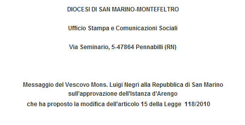Mgr Negri a immédiatement pris sa plume pour adresser un message solennel à la République de Saint-Marin.