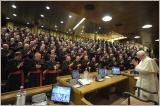 Chers frères, la mission ancienne et nouvelle qui nous attend est celle d'introduire les hommes et les femmes de notre temps à la relation avec Dieu, les aider à ouvrir leur esprit et leur cœur à ce Dieu qui les cherche et veut se rapprocher d'eux, les guider à comprendre qu'accomplir sa volonté n'est pas une limite à la liberté, mais c'est être vraiment libre, réaliser le vrai bien de la vie. Dieu est le garant, pas le concurrent, de notre félicité, et là où pénètre l'Evangile - et donc l'amitié du Christ - l'homme fait l'expérience d'être l'objet d'un amour qui purifie, renouvelle et réchauffe, et rend capable d'aimer et de servir l'humanité d'un amour divin.