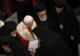 Benoît s’arrête pour chacun d’eux, il es regarde doucement dans les yeux, il serre leurs vieilles mains, il échange avec eux des mots que les chroniques ne recueilleront pas. Ce sont les Patriarches de sièges très anciens, jaloux de leur mémoire de martyre et de gloire, et aussi les Présidents des conférences épiscopales de Turquie et d’Iran, pays où la foi chrétienne représente aujourd’hui à peine le grain de moutarde dont parle la parabole de l’Évangile. Il ne leur remet pas un agenda sur comment être chrétien au Moyen Orient (*) et ne pas mourir en tentant de l’être. Ce n’est pas le plan stratégique d’une entreprise désespérée mais le regard plein d’intelligence et de passion des pasteurs d’un peuple très éprouvé, un regard, une accolade et une invitation pressantes : Restez sur la terre de vos pères, soyez des témoins du crucifié, construisez au côté de vos concitoyens la paix basée sur la justice et le pardon!
