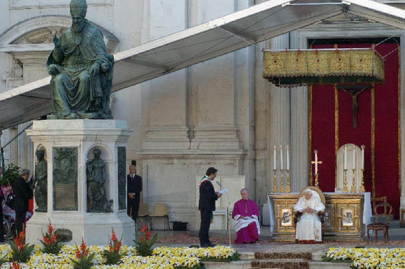 Benoît XVI s'est rendu ce matin au sanctuaire marial de Lorette pour le 50e anniversaire du pèlerinage qu'y fit Jean XXIII juste avant l'ouverture du Concile Vatican II.