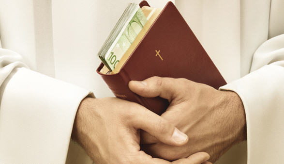 Quant à la "bible" (en réalité, un missel, mais les auteurs ne font sans doute pas la différence), le message est plus clair, les marque-pages sont des billets de banque.