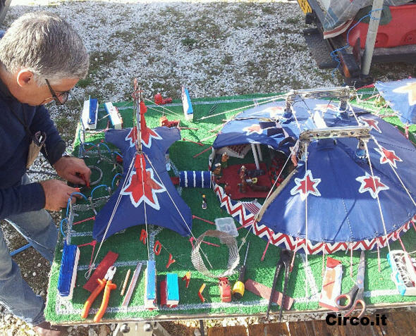 Les dernières touches sont données par l'artiste à Marina di Carrara (la ville toscane où le cirque fait ces jours-ci étape) et reproduisent en tous points un vrai cirque. La maquette est si parfaite dans les moindres détails que Gianni Giannuzzi dit: «la monter, c'est comme monter un vrai cirque».