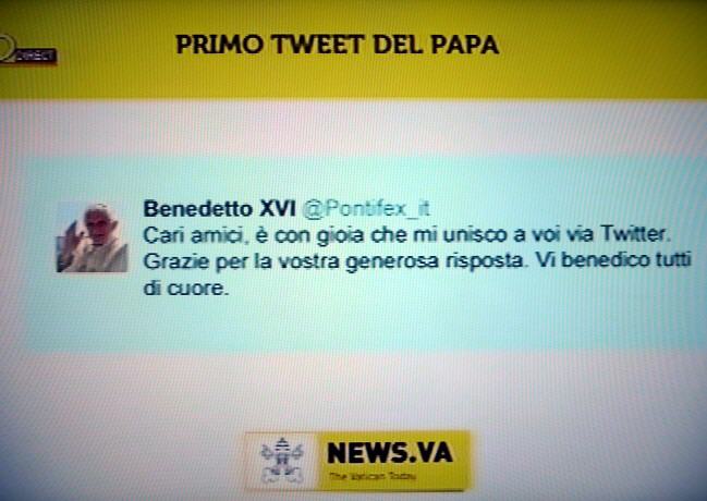Un an après, en juin, Benoît XVI a publié un premier « tweet » par l’intermédiaire du portail newx.va.