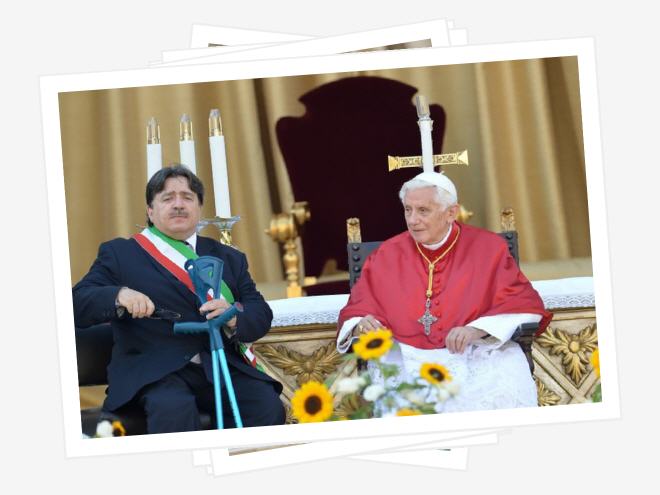 Au début du pontificat, une certaine «vulgate» des médias répétait que Benoît XVI était un Pape «froid», incapable de réchauffer les cœurs des masses. Pour pulvériser ce lieu commun, il suffisait de se trouver, tôt ce matin, sur la Tuscolana (ndt: c'est le nom de la route), entre les files de voitures et de bus, jusqu'à la forteresse de Frascati. Ils sont beaucoup plus nombreux que prévu, en effet, les gens qui ont préféré la rencontre avec le Pape à un dimanche à la mer. Dans la ville qui, après Rome, donna à le plus de Papes à l'Eglise, Joseph Ratzinger a été accueilli comme un ami , mais surtout comme un guide dont on est sûr de recevoir des paroles de vérité et de réconfort, d'autant plus nécessaires dans un moment de grave crise économique pour une région autrefois florissante et riche en activités entrepreneuriales. Maintenant la récession mord ici aussi, et cela se voit à l'œil nu.