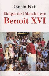 Le professeur Donato Petti, directeur et professeur de Théologie de l'éducation à l'Université Pontificale du Latran, a eu l'idée géniale de présenter l'ensemble de la pensée de Benoît XVI relative à l'éducation, sous la forme d'une longue interviewe, un peu comme les livres d'entretien avec Peter Seewald. C'est-à-dire qu'il a imaginé des questions dont les réponses sont des paroles prononcées par le Saint-Père, en précisant à chaque fois dans quelle circonstance.