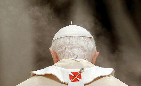 L'image de Benoît XVI vu de dos: c'était celle qu'avait choisie Jean-Marie Guénois pour illustrer son article sur l'âge du Pape (cf. Tir croisé).