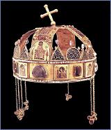 La splendide Couronne de Saint-Etienne, aver sa légendaire croix oblique, a été extraite du musée où la dictature soviétique l'avait remisée, une façon de dire après 1945 que la Hongrie d'avant Staline était morte. Aujourd'hui, cette Couronne - et les joyaux qui l'accompagnent -, est honorée au centre du Parlement hongrois, sous sa coupole principale. Une impressionnante garde (deux soldats impeccables) lui rend en permanence les honneurs, relevée toutes les deux heures au cours d'un cérémonial sans faille.