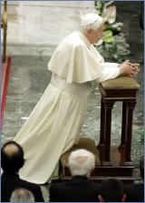 Et contre cela, il y a le non-conformisme chrétien. Nous ne voulons pas être "conformés" et loués, nous ne voulons pas l'apparence, mais la vérité, et ceci est la vraie liberté chrétienne, se libérer de cette nécessité de plaire, de penser comme la masse devrait penser. La liberté de la vérité, et ainsi recréer le monde qui ne soit pas opprimé par l'opinon, par l'apparence, qui ne laisse plus apparaître la réalité elle-même, de sorte que le monde virtuel devient plus réel et plus fort, on ne voit plus le monde réel et la création de Dieu. Le non-conformisme chrétien nous rachète et nous restitue à la vérité. Prions le Seigneur de nous aider à être des hommes libres dans ce non-conformisme qui n'est pas contre le monde, mais qui est l'amour vrai du monde. "