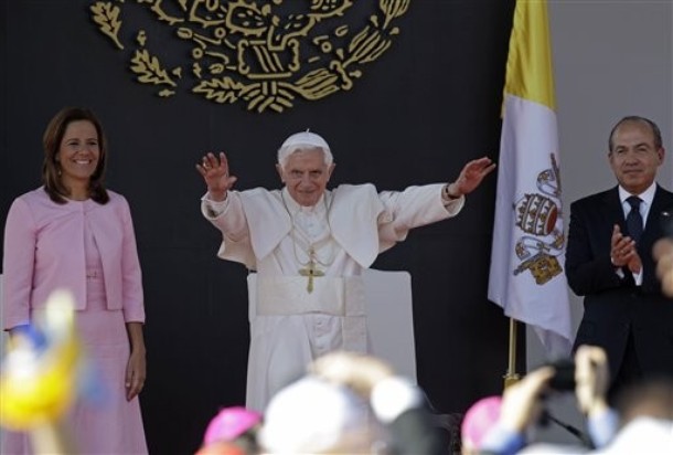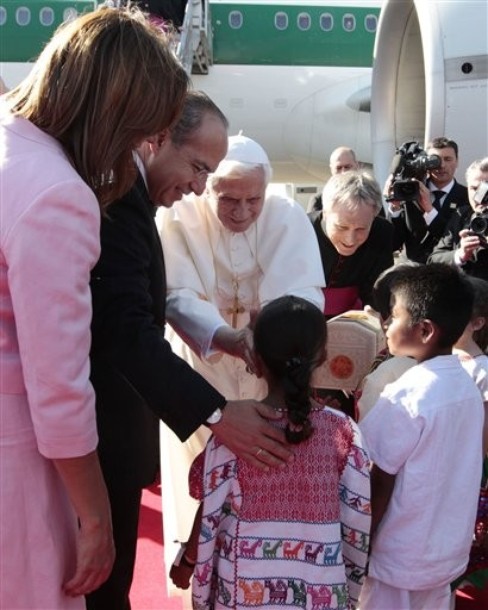 Le pape a été accueilli par le président fédéral Felipe Calderon et son épouse Margarita Zavala, et un groupe d’enfants, sous les ovations d’une foule nombreuse, notamment des enfants. ...