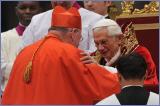 Les paroles que Jésus adresse à Pierre mettent bien en évidence le caractère ecclésial de l’événement d’aujourd’hui. Les nouveaux Cardinaux, en effet, par l’attribution du titre d’une église de cette ville ou d’un diocèse suburbicaire, sont insérés à tous les effets dans l’Église de Rome, guidée par le Successeur de Pierre, pour coopérer étroitement avec lui au gouvernement de l’Église universelle.