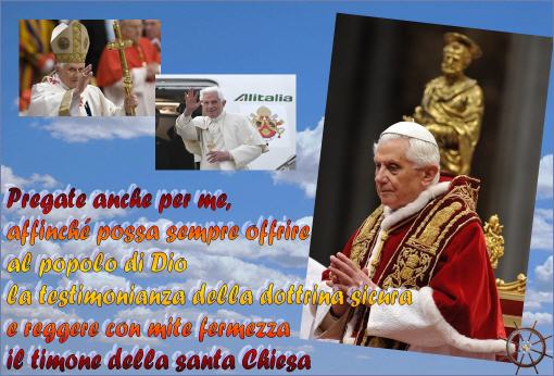 Gloria a créé deux collages, dont l'un rappelle l'exhortation du Pape dans son homélie: " Priez aussi pour moi, afin que je puisse toujours offrir au Peuple de Dieu le témoignage de la doctrine sûre et tenir avec une douce fermeté la barre de la sainte Eglise" (18/2/2012)