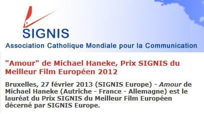 L'information est relayée par radio Vatican en français. SIGNIS, l’Association catholique mondiale pour la communication, a rajouté une ligne à l'immense palmarès du nouveau manifeste pour "l'euthanasie au nom de l'amour" (10/3/2013)