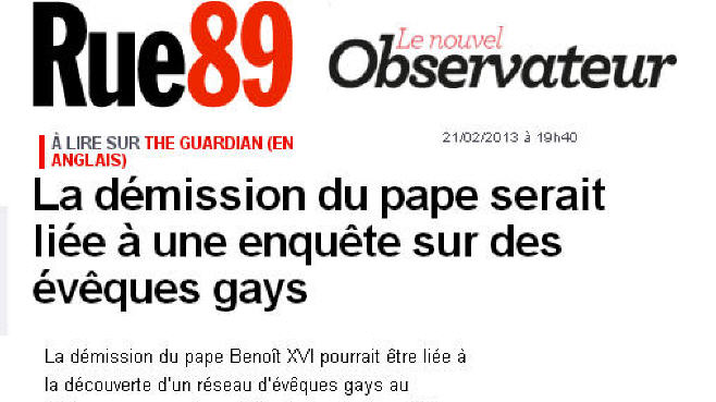 En lisant et en entendant la nouvelle ce matin (instantanément relayée par les medias parmi les plus ardents zélateurs de l'homosexualisme), j'ai immédiatement pensé qu'il ne s'agissait pas d'un énième bobard, mais bien plutôt du dernier épisode en date de la guerre féroce, la guerre à mort, que le lobby homosexualiste a engagée contre le Pape dès le début de son pontificat. Simplement parce qu'ils savaient qu'il allait faire le ménage.