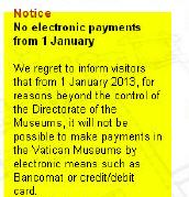 Depuis le 1er janvier, tous les paiements par carte bancaire suspendus au Vatican.... (4/1/2012)