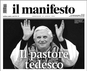 Il persiste, honteusement, après sa démission. Mon amie Teresa partage mon indignation... Et elle ressort une interviewe du Cardinal Bergoglio, de février 2012, peu flatteuse pour les medias, mais bizarrement occultée. (15/3/2013, mise à jour)