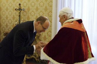 Il a inauguré ses fonctions de préfet de la Maison Pontificale à l'occasion de la visite du couple princier de Monaco. Images, video et compte-rendu (12/1/2013, mise à jour)