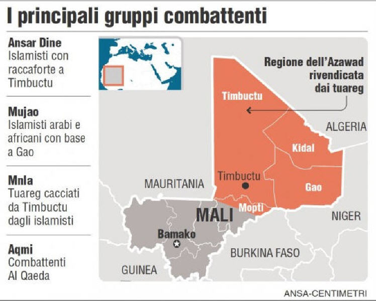 Faute d'un accord entre le gouvernement et le MNLA, un sanglant conflit ethnique pourrait se superposer à la guerre contre les djihadistes. Un processus équivalent, mais inversé, à ce qui a été enregistré en Libye après la chute de Kadhafi, quand tous les immigrés africains et les nombreux Libyens à peau noire subirent massacres, pillages, viols, tortures, violences et réclusion dans au moins 80 prisons secrètes gérées par la différentes milices.