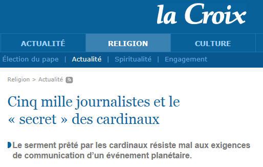 C'est le dernier angle "d'attaque" des medias, qui écrivent en ces jours qui précèdent le Conclave un suspense haletant: le secret sera-t-il gardé? (12/3/2013)