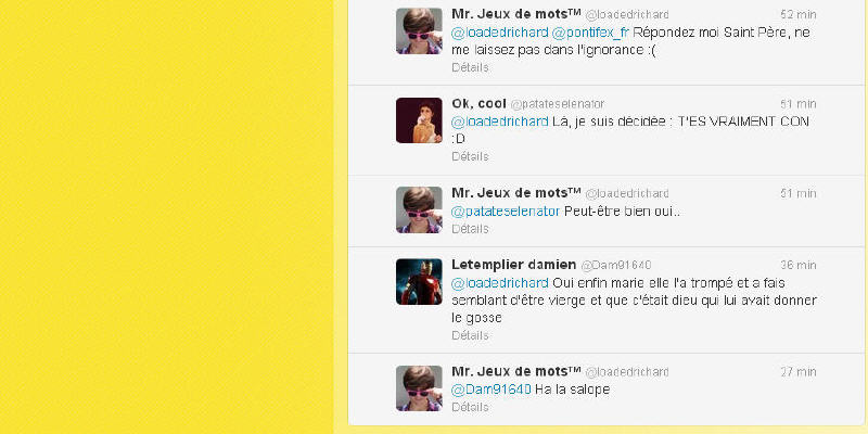 Même si les twitteurs ne tuent pas le Saint-Père physiquement, ils crachent sur un homme sublime et c'est déjà une chose qui me fait horreur.