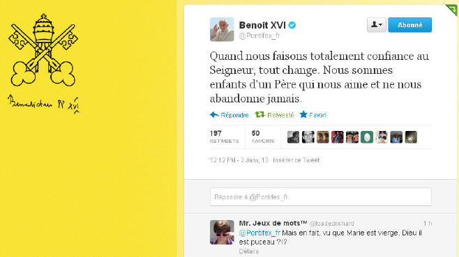 Je souffre en voyant à quoi s'est exposé le Saint-Père en ouvrant un compte twitter. Je suis de plus en plus persuadée que c'était superflu.