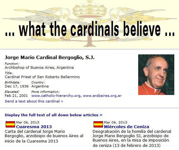 Carlota me signale ce site très riche, contenant de nombreuses homélies du Cardinal Bergoglio depuis 2005 (et c'est vrai qu'elles ne semblent pas correspondre au portrait tracé par les medias...)