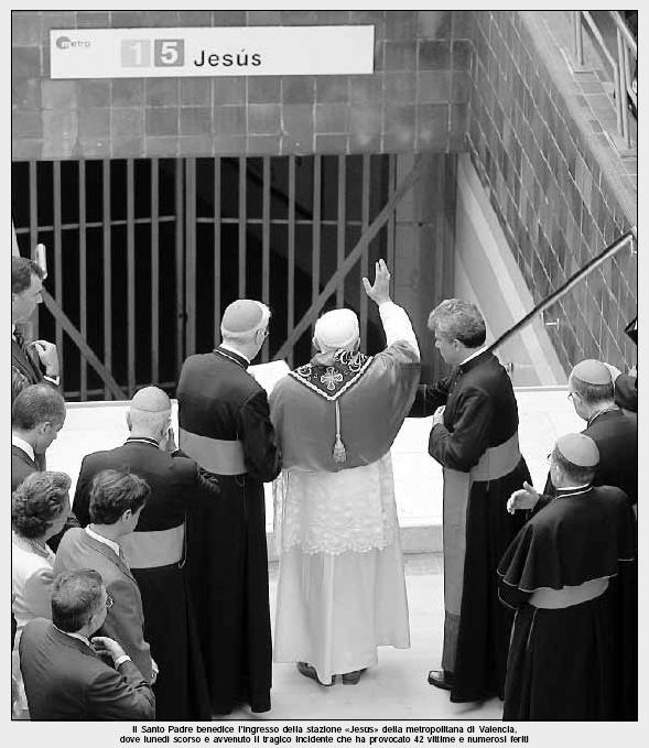 3 juillet 2006, station de métro "Jésus", à Valence, à la veille de la visite de Benoît, une rame de métro déraille. 24 juillet 2013, veille de la fête liturgique de Saint Jacques, catastrophe ferroviaire à Saint Jacques de Compostelle. (25/7/2013)