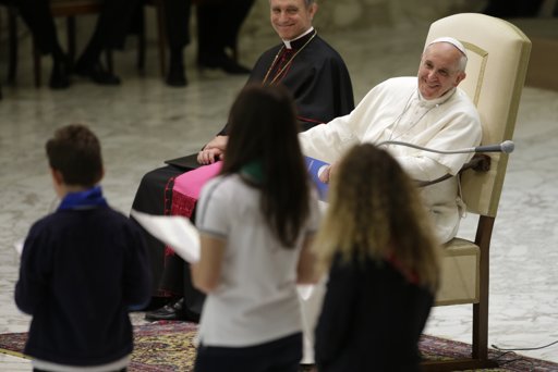 Comme il le fait souvent, il a laissé de côté le texte dactylographié qui était préparé d'avance ("il y a cinq pages! Ennuyeux", a-t-il dit) et s'est prêté avec une grande décontraction et beaucoup de familiarité au jeu des questions-réponses avec les enfants et quelques adultes présents dans l'assistance (l'échange complet est à lire ici: www.zenit.org/fr/articles/j-essaie-de-devenir-un-peu-plus-pauvre).