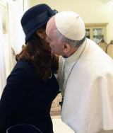 Cristina (Kirchner) s’adresse à toi en t’appelant Jorge. Le fait d’embrasser les dames de haut niveau de représentation n’était pas jusqu’alors une habitude pontificale mais en se généralisant, cela cessera d’être une nouveauté. Le Pape cherche les problèmes car il ne peut pas embrasser des milliers de dames et il sera critiqué par celles qui n’ont pas été embrassées et qui regretteront de ne pas avoir le même droit que celles qui l’auront été.