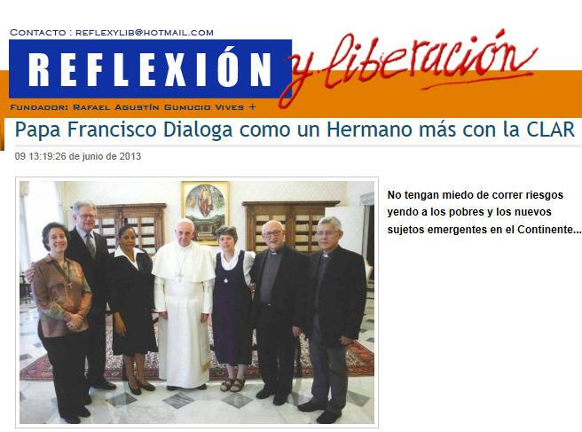 dans un bref passage il confirmerait l'existence d'un lobby gay au sein de l'Eglise. Carlota a traduit, non sans mal (car c'est de l'oral, formellement assez décousu) l'échange avec les délégués du CLAR publié sur un site chilien progessiste (11/6/2013, mise au jour)