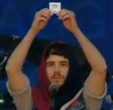 Allons à Rome: à cinquante mètres, ou un peu plus, de la cathédrale qui est la cathédrale de toutes les églises catholiques du monde; dans la ville du Pape, qui est telle, comme le rappelle l'actuel Pontife, en tant qu'évêque de Rome. Eh bien, à cet endroit, on tourne très gravement en dérision l'Eucharistie, en utilisant un préservatif comme s'il s'agissait d'un instrument de salut, et on le présente comme instrument de salut parce qu'il libèrerait de toutes les maladies. Et les gens sont invités à en faire usage, parce c'est la voie de l'émancipation intellectuelle, morale, sexuelle. Par quelqu'un qui s'agite et danse à demi-nu, dans un spectacle vraiment pénible même du point de vue esthétique (ndt: Andrea Tornielli s'est à juste titre énervé, lui aussi: le pauvre imbécile de l'image ci-contre, qui a terminé le spectacle en se déculottant, se voit affublé sur son site du titre qui ne nécessite pas de traduction "coglione"!).